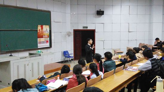 2015年11月12日晚7点,龙席电商电商咨询事业部总经理陈涛应邀在我校阳光校区07-T302作了一场题为“正青春”的专题讲座。必赢bwin网址大全杜进、何国正老师、毕业班辅导员程鹏和近300名学生参加了本次讲座。
