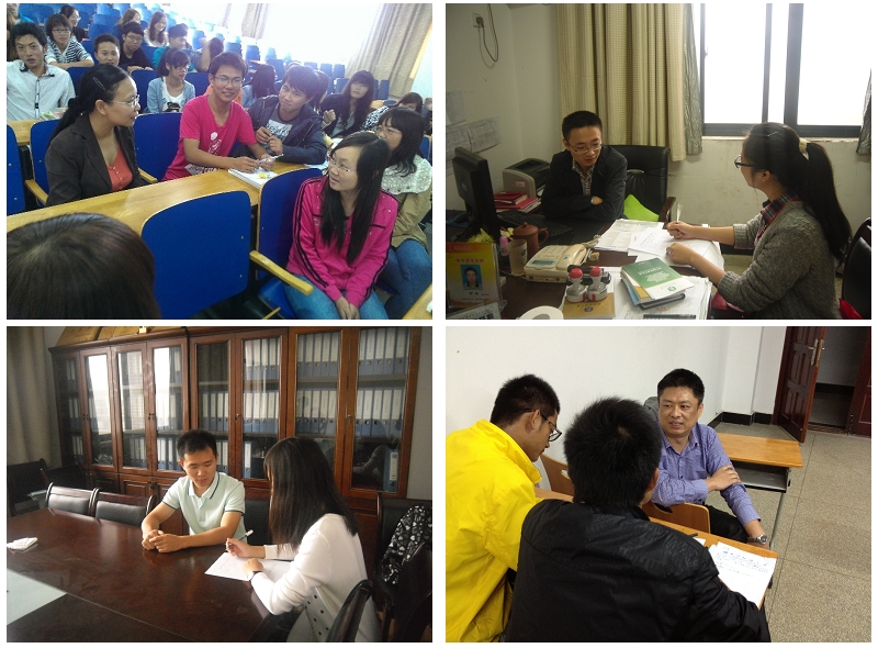 随着“两访两创”活动在全校如火如荼地进行,必赢bwin网址大全在认真学习省委及高校工委关于“两访两创”活动精神基础上,以“交流思想、立德树人、促进和谐、推动发展”为主要任务,以“教师全覆盖、学生全覆盖”为基本要求,9月下旬至10月上旬针对我院2012级全体新生进行了面对面的交流与访谈。必赢bwin网址大全院长夏火松、分党委书记黄少年、副院长杨卫丰、副院长王济平、分党委副书记肖信华及管院专业老师、12级全体班主任、辅导员为本次新生访谈的访谈人。