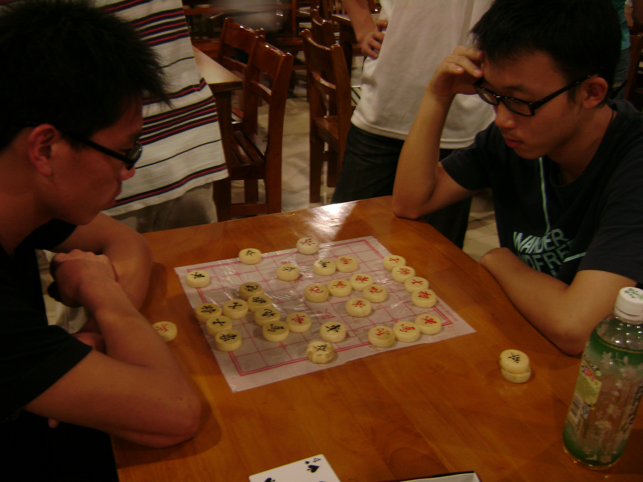 比赛由军棋,五子棋,象棋,跳棋四种棋种组成,采取“抽签制”一切参照正规比赛规则进行,选手们全神贯注,尽显个人独特风采和智慧,裁判严格公正,赛场秩序竟然,经过一个多小时的激烈比赛,国贸071班顾丽军,广电081班王康元,轻化051班李明刚,生物082班刘少华四位同学脱颖而出,分别获得军棋,五子棋,象棋,跳棋的冠军。