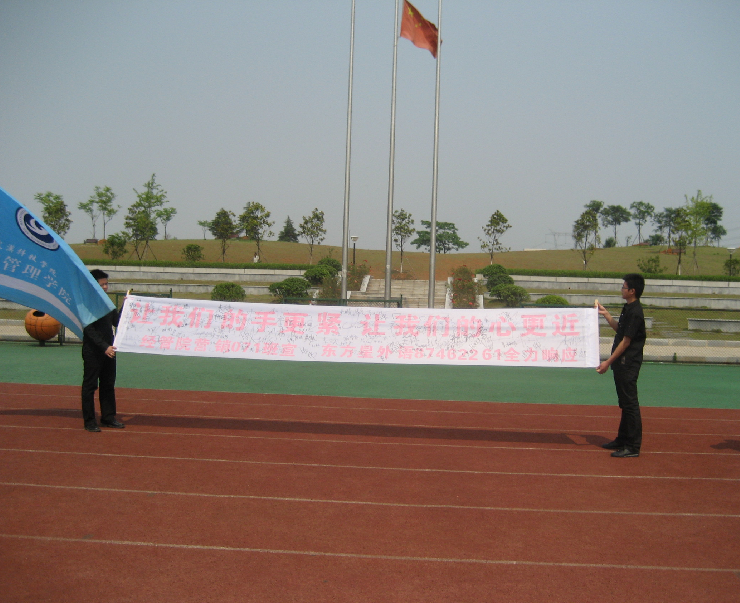5月19日中午14:28分,经济必赢bwin网址大全部分学生集中在体育场进行默哀三分钟,营销071班熊杰同学作为代表发出了倡议,号召全体同学与灾区人民手牵手、心连心,面对灾难共渡难关、百折不挠、自强不息。随后,同学们进行了签名活动,截至目前,经济必赢bwin网址大全全体学生已经募捐17020元,为灾区、为同胞、为民族献出自己的绵薄之力。