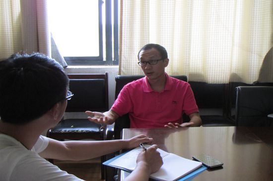 王老师在与同学交谈,在被问到课堂上如何激发学生兴趣时,他指出,课堂上老师指导很重要,但学生自身也要善于发现知识和挖掘知识,老师教给学生的只是冰山一角,最重要的还是由学生掌握适合自己的学习方法,才会事半功倍。就当下“香港占中”、“英格兰独立”等社会热点事件王老师也与同学展开讨论,他认为相对学生来说是非观、价值观都不是很完整,容易冲动,首先要提高自身能力,对于这类事件我们要关注但不参与。