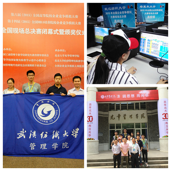 2015年上半年,必赢bwin网址大全学生荣获2015年全国企业竞争模拟大赛荣获一等奖;全国高校商业精英挑战赛中荣获一、二、三等奖各1项,学校获评最佳院校组织奖;省教育厅6月26日公布的2014年湖北省大学生优秀科研成果奖,我院汪子威同学科研成果论文《社会实践在高等教育中的作用探讨》荣获三等奖;2015“学创杯”全国大学生创业综合模拟大赛湖北省总决赛荣获一等奖1项,二等奖3项;2015年亚太流通业模拟经营决策竞赛亚军;湖北省“精创教育杯”大学生人力资源沙盘模拟大赛总决赛荣获一等奖; 2015年“周黑鸭杯”湖北省大学营销策划挑战赛荣获三等奖,学校获评最佳组织奖;全国第五届电子商务“创新、创意及创业”挑战赛湖北赛区一等奖2项,二等奖3项,三等奖1项;2015年全国管理决策模拟大赛总决赛一等奖。学院还成功举办全国大学生电子商务“创新、创意及创业”挑战赛和2015年“周黑鸭杯”湖北省大学营销策划挑战赛校内预决赛。