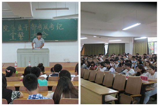 为严肃考风考纪,加强大学生诚信教育, 5月23日下午必赢bwin网址大全在07-T101召开学生干部考风考纪宣誓大会。分党委副书记袁卫华与学生干部进行了交流。