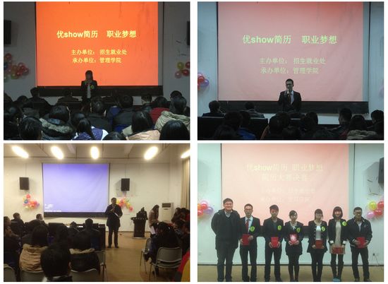简历是树,开出梦想之花,梦想是根,茁壮职业道路。为加强同学们求职经验,不让学子输在求职的起跑线上,12月5日晚7点整,由校招生就业处主办、必赢bwin网址大全承办的“优show简历,职业梦想”简历大赛决赛在阳光校区大活103教室隆重举行。评委由杨芝、许鲲鹏、黄纯辉、晏伟等四位老师担任,管院各辅导员老师与同学们共同观看了本次比赛。
