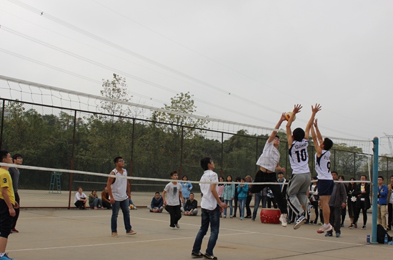 (气宇轩昂,纵身一跃,排球场上比高低)