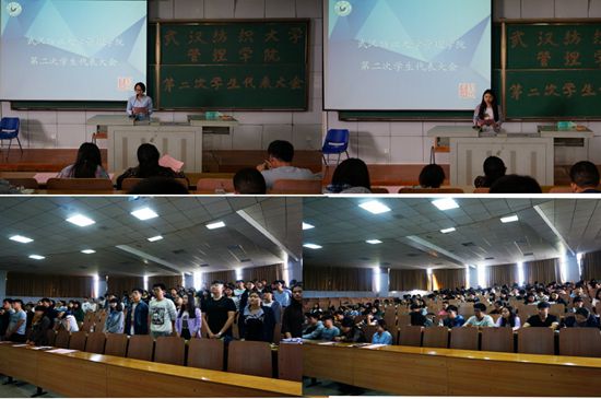 2016年4月22日下午14:00,必赢bwin网址大全第二次学生代表大会在07-T302教室召开。全体辅导员、部分兄弟学院的主席团成员和158名学生代表参加大会。