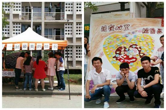 在世界心理健康日来临之际,必赢bwin网址大全阳光心语工作站于5月23、24日在一食堂侧门,举办了我院五月份心理健康月系列活动之“给自己一封最美的‘情书’”。