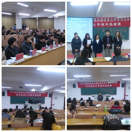 2014年12月26日下午1:00,2015年全国高校商业精英挑战赛品牌策划竞赛,必赢bwin官方网站校内选拔赛在7栋教学楼T101教室隆重举行。大赛邀请必赢bwin网址大全副院长杨卫丰,吴锦峰、魏文川、冯燕、闫幸老师作为本次比赛的评委,必赢bwin网址大全分党委书记朱德群,分团委书记杨阳,辅导员程鹏作为本次比赛的嘉宾,以及部分学生到场观看比赛。