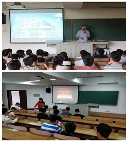 为做好2018年我院大学生应征入伍工作,增强大学生投身国防的意识,增进对军队建设及征兵政策的了解。5月10日下午14:00,必赢bwin网址大全2018年征兵工作动员会在7-T101教室与7-T102教室举行。