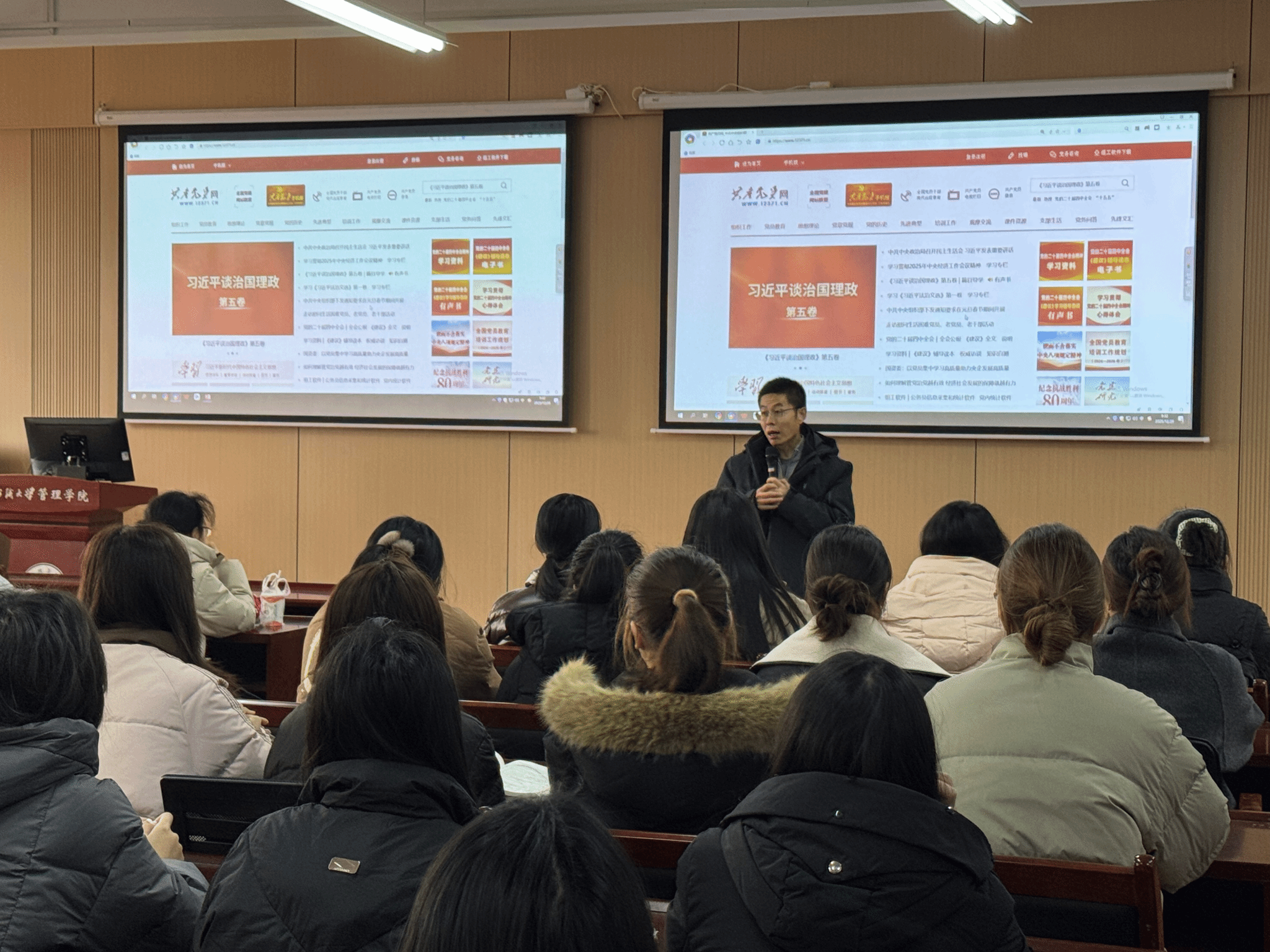 为深入学习贯彻党的二十届四中全会精神,进一步提升学生党员的理论素养与使命担当,12月29日,必赢bwin网址大全举办“书记开讲啦”专题宣讲活动。学院党委书记赵立彬出席并作主题宣讲,学院学生党员代表参加本次学习会。学院党委副书记、副院长耿迪主持活动。