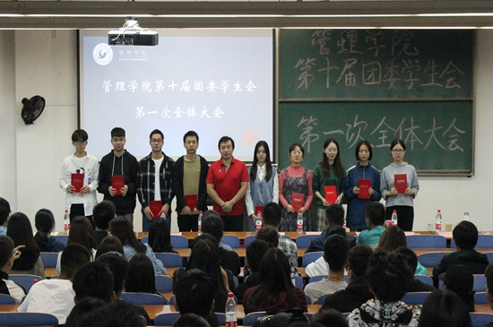 为加强学生会建设管理,增进各部门之间的联系,确保新学期工作顺利开展。10月20日晚19:45,必赢bwin网址大全在03-T102教室举行必赢bwin网址大全第十届团委学生会干部聘任仪式暨第一次全体大会。必赢bwin网址大全团委书记王双喜老师出席,学生会全体成员参加。