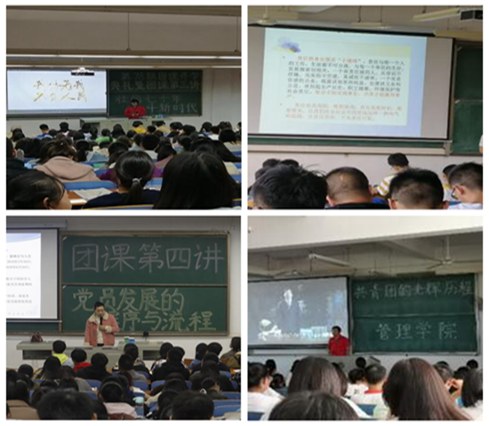 本期团课包含五个专题,分别为《共青团的光辉历程》、《团员的责任与担当》、《党员的发展程序与流程》、《壮丽七十年,奋斗新时代》、《“赶考精神”的思考与认识》。团课内容从团员的权利与义务、责任与担当、使命与方向谈到共青团的历史与发展、挫折与成就、任务与挑战;从新中国七十年风雨兼程披荆斩棘谈到当代大学生对“赶考精神”的思考与认识;从为什么要成为党员到怎么样成为党员再谈到成为什么样的党员。
