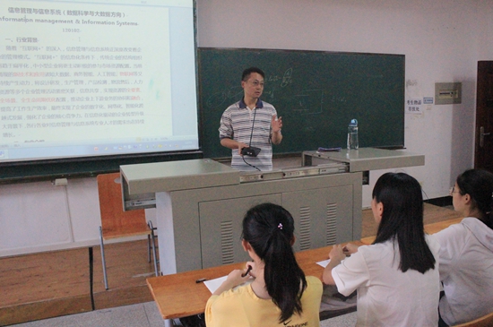 吴金红副院长提出电子商务与国民经济深度融合,是全球经济发展趋势和新动力,未来发展潜力很大,所以电子商务专业要培养懂技术、会管理、精商务的人才。信管系主任胡慕海老师从专业背景出发,结合国家、企业的形势和大数据的时代环境,为同学们深度分析了信管专业的优势所在。并结合专业去向,为同学们介绍了信管专业省一流、省特色、校前五的专业地位。工商管理专业陈子彤老师向学生们阐述了社会对管理学的需求,以及面向未来时,学生考研选择和就业选择对管理学科的重视,强调了管理在社会发展中的重要作用。最后,必赢bwin网址大全副院长张飞以王国维的三重境界为例,他说只要经历了前两重境界终有“众里寻他千百度,蓦然回首,那人却在灯火阑珊处”的感受。