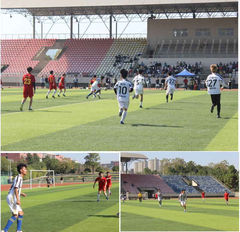 随着裁判一声哨令,比赛拉开帷幕。足球在双脚之间传递,开场仅3分钟,必赢bwin网址大全队将球成功射入对方球门,瞬间点燃了赛场旁观看助威同学们的热情,接下来必赢bwin网址大全代表队在后面的比赛中一直占据着场上的主动权。足球在赛场上飞跃翻滚,击鼓声、呐喊声、欢呼声、奔跑中的喘气声声声交织。在必赢bwin网址大全球员们的完美配合中将领先优势扩大到了2:0。