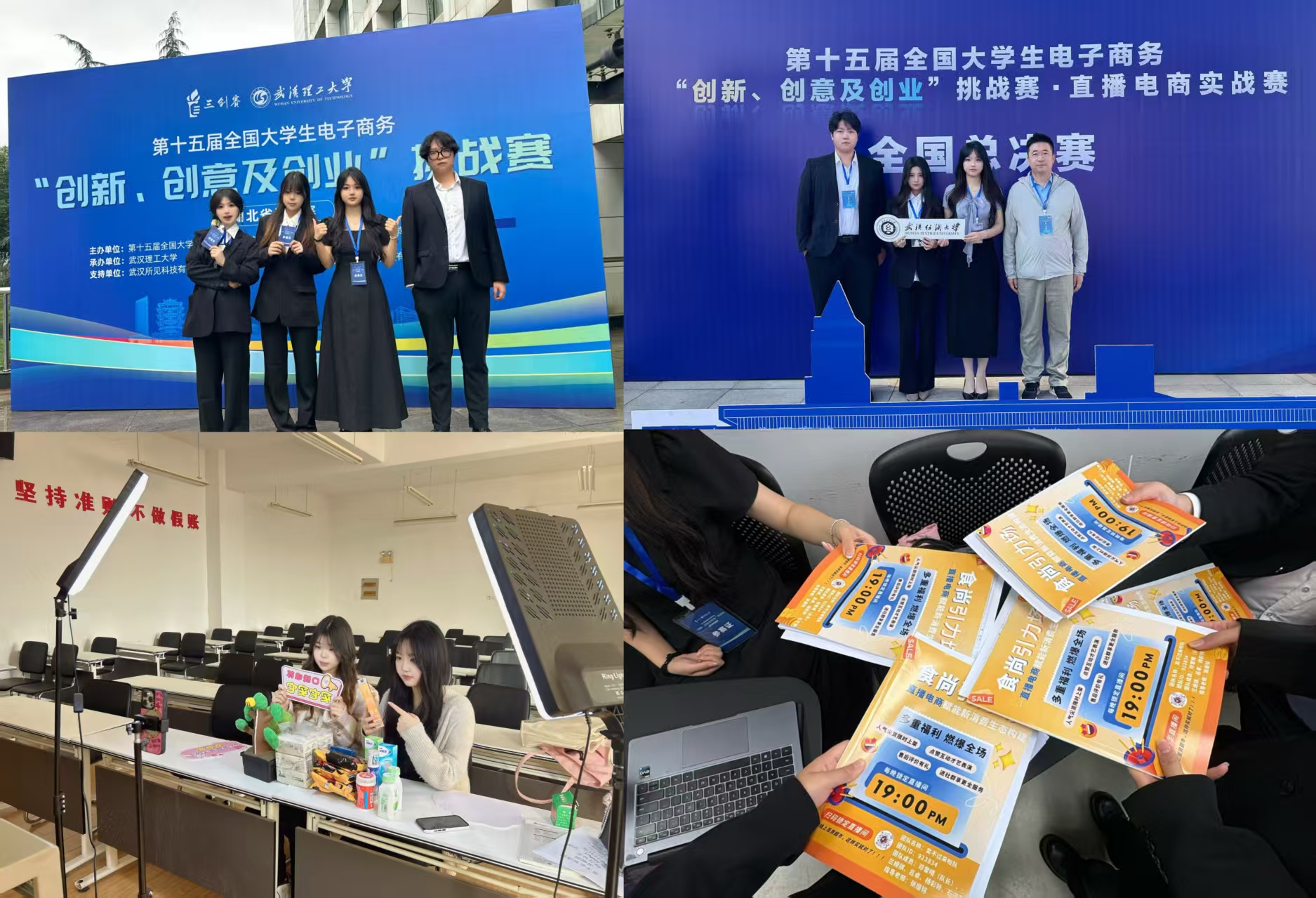在这一全国性赛事中,必赢bwin网址大全邓雪晴、吕卓、石千慧三位同学,联合湖北经济学院兰娅祺、湖北民族大学杨彩铃组成《食尚引力场——直播电商赋能新消费生态构建》项目团队——“卖不过来啦队”。团队成员密切协作,深度融合电商运营、直播策划、内容创作与技术支持等多领域优势,经过七个多月的直播带货实战运营,累计发布原创短视频562条,微信视频号总播放量达5万次,抖音平台总播放量突破70万次,完成53场高质量直播,最终斩获全国总决赛一等奖,创造了必赢bwin官方网站在三创赛直播电商实战赛道的最好成绩。同时,指导教师张座铭副教授荣获“优秀指导教师奖”。