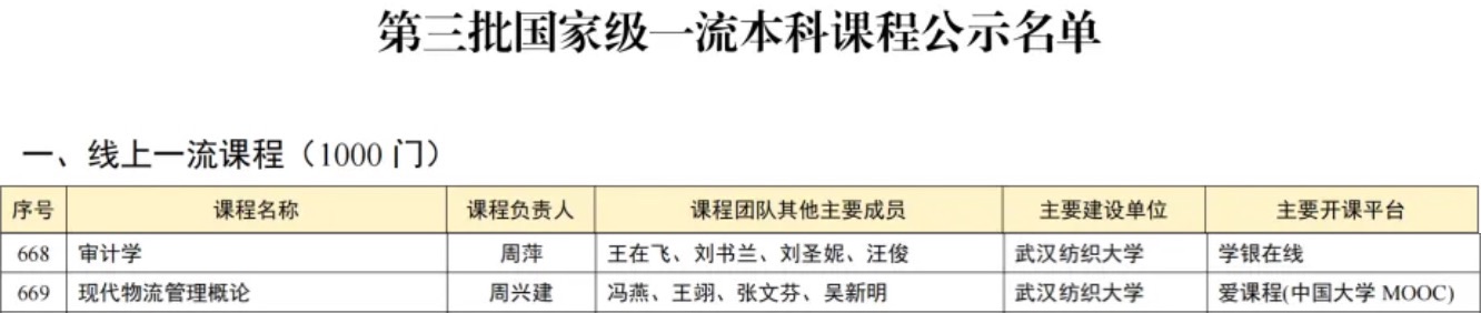 近日,教育部高等教育司发布《关于第三批国家级一流本科课程认定结果的公示》,我院两门课程成功入选:由我院周萍老师领衔的《审计学》课程、周兴建老师领衔的《现代物流管理概论》课程,均获批国家一流线上线下混合式课程。这是我院本科专业建设取得的又一重大成果。