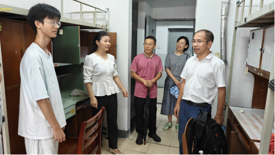 随后,学院领导一行走访了新生宿舍。赵立彬仔细询问了新生对住宿环境的适应情况,叮嘱他们保管好随身物品,尽快转变角色,融入大学集体生活。吴金红向新生家长介绍学院的专业特色和人才培养理念,耐心解答关于课程设置、就业前景的疑问,让家长们吃下“定心丸”。新生们纷纷表示,学院的热情让他们感受到了家一般的温暖。