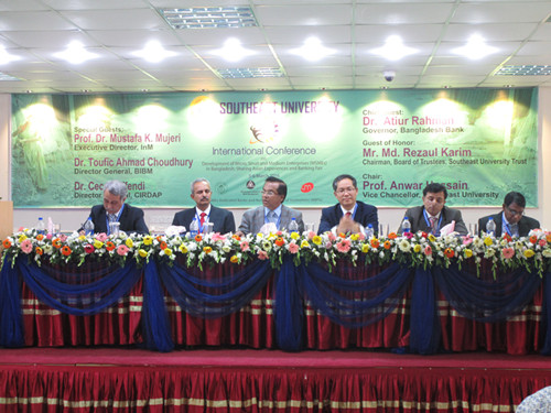 3月6日,“分享亚洲经验”国际中小微企业管理会议在孟加拉达卡东南大学正式召开,本次会议由东南大学携手孟加拉银行、孟加拉银行必赢bwin网址大全、银行和非银行金融学院,微观金融学院、以及亚太地区联合发展中心共同举办。会议邀请了来自中国、印度、泰国、马来西亚等十多个亚洲国家和地区的知名学者、专家,以及银行金融机构高管、中小企业家近百人参与会议。