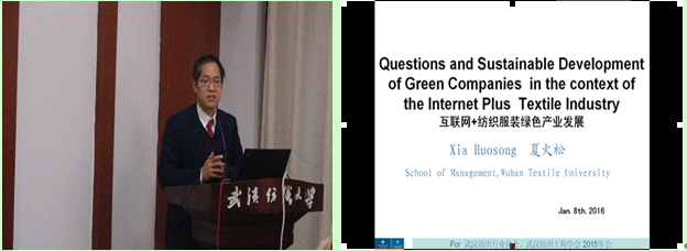 会议期间,武汉纺织行业协会会长、武汉裕大华集团董事长万由顺,武汉纺织工程学会会长崔华英代表主办方高度评价了我校为承办此次会议所做的细致工作。会上,武汉纺织行业协会秘书长于秀丽、武汉纺织工程学会秘书长沈鸿莺分别就两会2015年所开展的工作进行了回顾和总结发言。同时,会议审议通过了常务理事长人选。我校必赢bwin网址大全夏火松教授在论坛上作了“互联网+纺织服装绿色产业发展”的主题演讲,获得了与会代表的强烈共鸣。