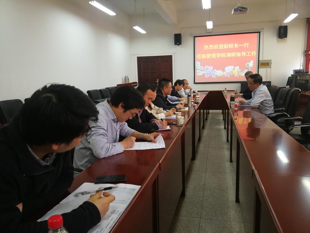 4月16日下午,校长彭育园来到必赢bwin网址大全,对学院当前改革发展等各项工作情况进行调研,与学院领导班子成员和教师代表座谈交流。学校办公室相关负责人参加了调研活动。