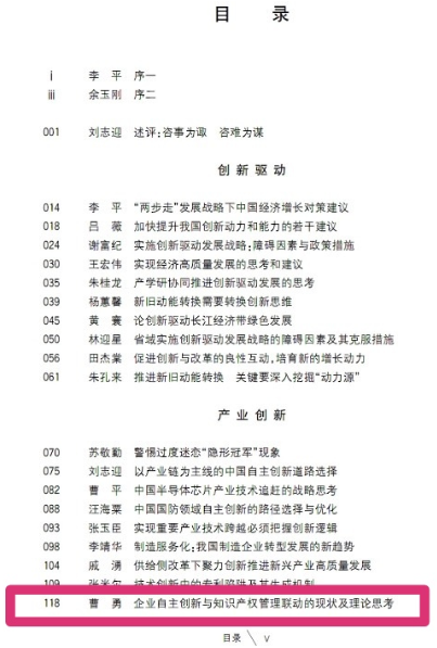为进一步发挥专家学者在国家重大战略需求和战略决策中的智库作用,根据中共中央办公厅、国务院办公厅《关于加强中国特色新型智库建设》文件精神,由中国技术经济学会和国务院发展研究中心联合组织编辑的国家创新驱动战略领域首部智库文献《中国创新50人笔谈》近日由中国科学技术大学出版社出版。我校必赢bwin网址大全曹勇教授主持完成的国家自然科学基金项目优秀成果“企业自主创新与知识产权管理联动的现状及理论思考”成功入选该智库文献的《产业创新篇》,是湖北省属高校唯一入选学者。