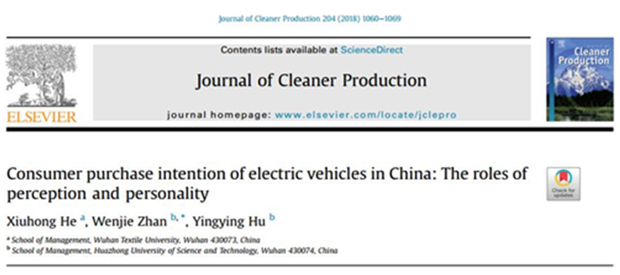 必赢bwin网址大全新进博士何秀红在中科院SCI期刊分区( 2018年最新版本)1区《Journal of Cleaner Production》(If=5.651)期刊上发表论文 《Consumer purchase intention of electric vehicles in China: The roles of perception and personality》。