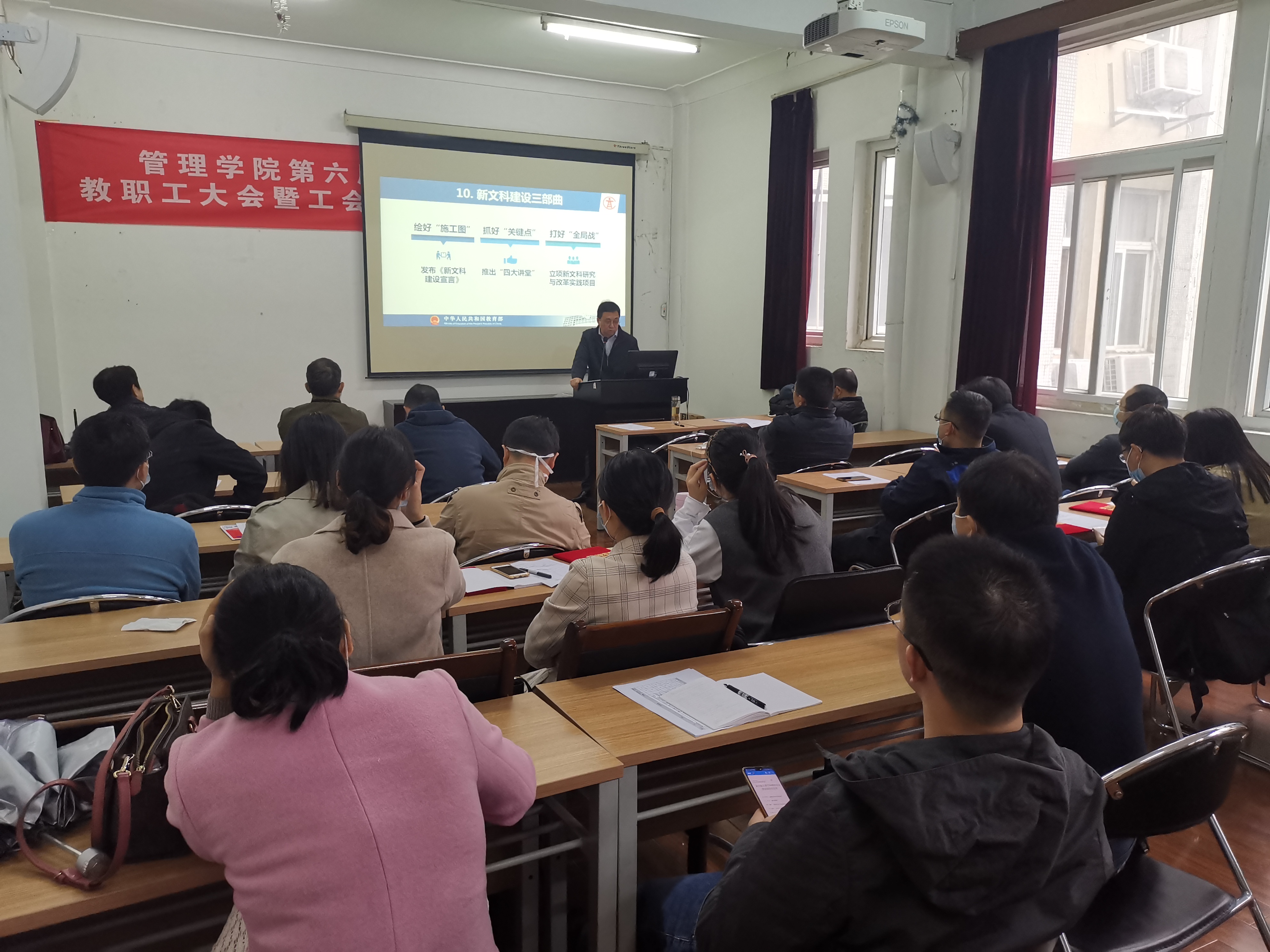 会后,全院教师以教研室为单位,热烈讨论本次会议内容,并结合本系实际,深入学习研究推进新文科建设工作。