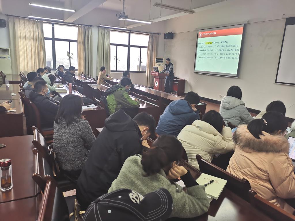 按照学校党委统一部署,12月10日下午,学习贯彻党的十九届五中全会精神学校党委宣讲团成员、马克思主义学院喻学林教授,为必赢bwin网址大全全院教职工作了题为《乘势而上 开启全面建设社会主义现代化国家新征程——学习党的十九届五中全会精神》的宣讲报告。