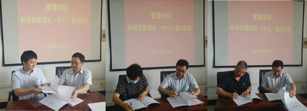 会上,王济平代表学院与3个科研创新团队(中心)正式签订了团队建设任务书。3个科研创新团队(中心)负责人万欣副教授、杨运忠副教授、余牛博士分别就中心未来3年建设规划进行了阐述。