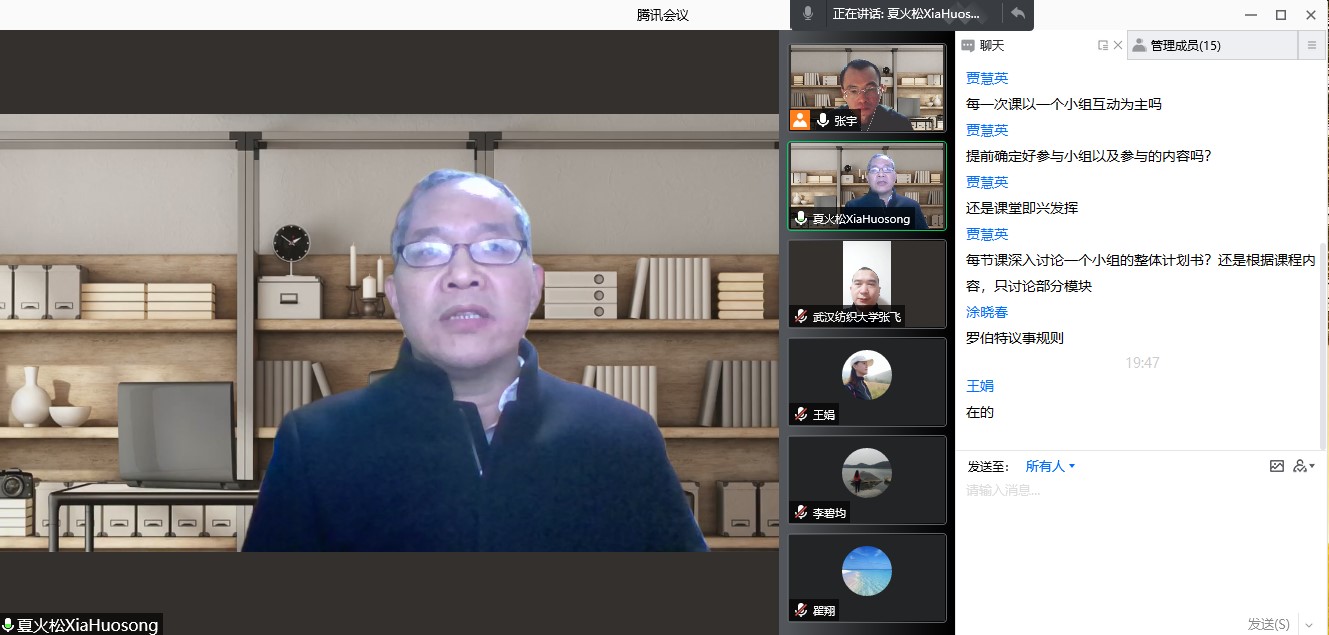 “湖北名师工作室”主持人夏火松教授交流分享了多年以来创新创业课程教学工作的心得体会,介绍了创新人才培养模式、完善课程体系和加强课程教学等相关做法与经验。