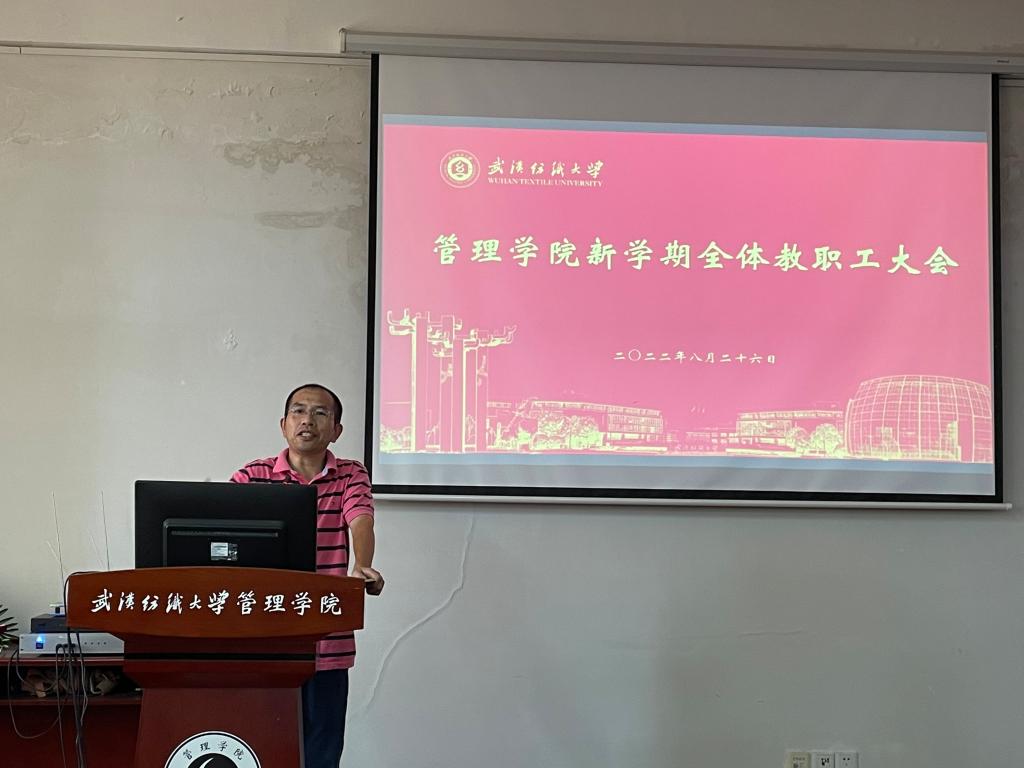 踏着初秋的脚步,新学期如约而至。8月26日下午,必赢bwin网址大全在阳光校区崇德楼531会议室召开新学期全体教职工大会,部署2022年下半年工作计划。会议由学院院长吴金红主持,全体教职工参加。