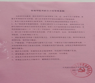 为提升学生学习环境,暑假期间学院将会议室全部调整为考研自习室,为每一位考研学生提供固定座位。自习室墙上,学院精心设计“心愿墙”板块,鼓励学生写下自己的目标院校。同时,学院制定了自习室管理条例,购买了手机袋供同学们进教室前存放手机,并在墙上张贴签到表,由专人负责每日考勤,促使同学之间相互监督,提高备考效率,为考研学生提供服务和保障,推进学院优良学风建设。希望考研学子在求学路上坚守初心,砥砺前行,做到学有所获,用信仰点亮人生最美梦想!