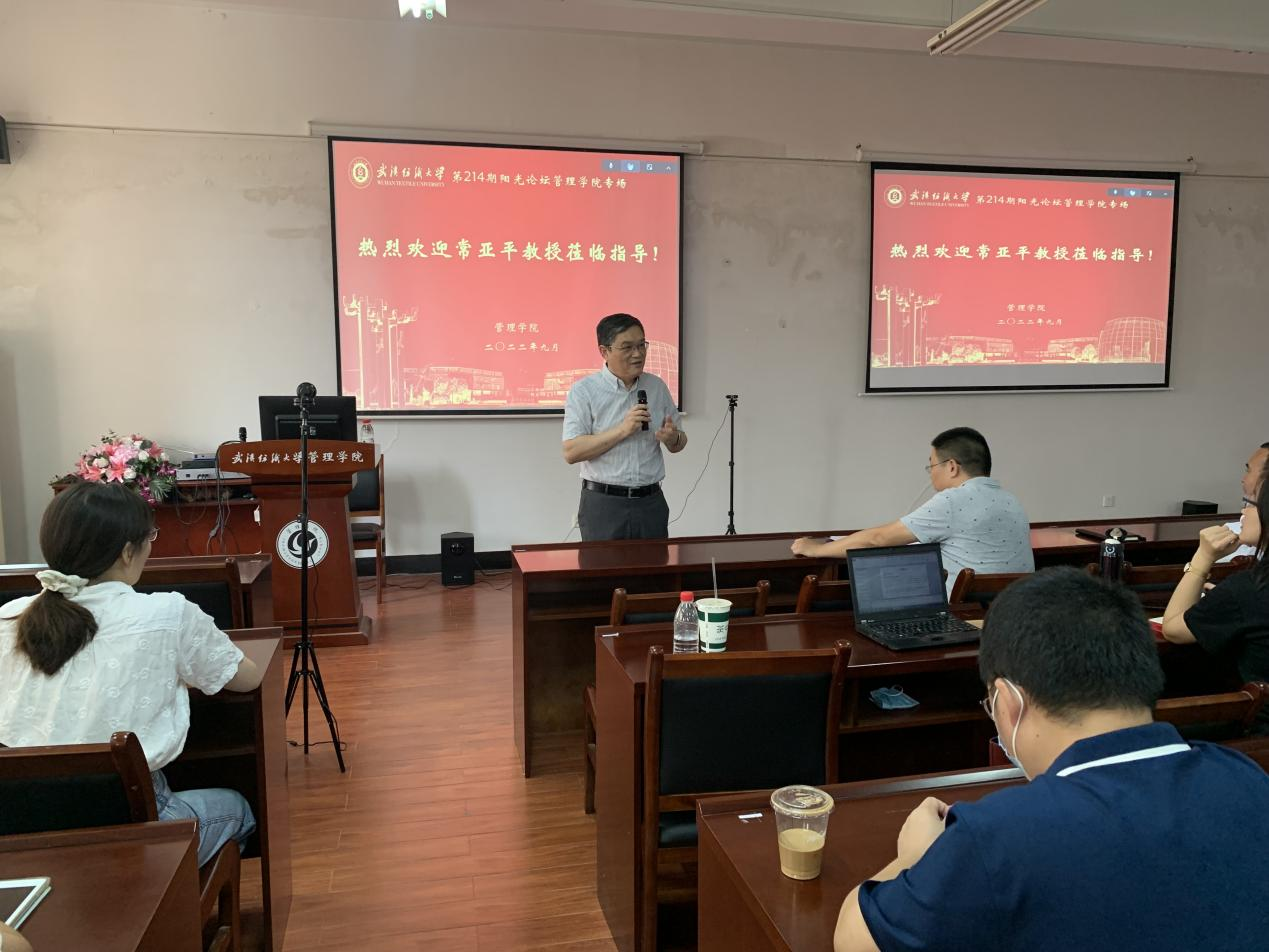 为切实推动我院2023年度国家、教育部基金申报质量,进一步夯实基金申报准备工作。必赢bwin网址大全于9月28日下午召开青年教师基金申报辅导会,会议邀请华中科技大学常亚平教授出席,会议由院长吴金红主持,党委书记滕胜娟、副院长吴锦峰、张飞及近五年来新进青年教师参加了此次会议。