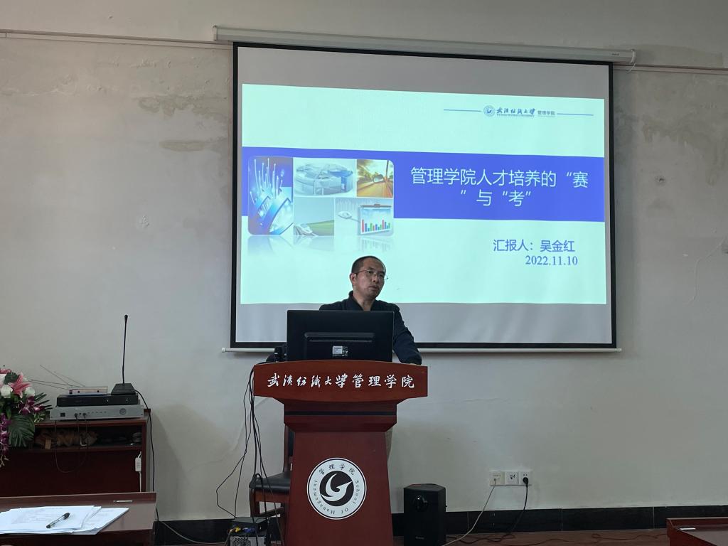 学院院长吴金红就《必赢bwin网址大全人才培养的“赛”与“考”》做了专题汇报,结合学院的学生人才培养和教师人才培养与学生考研、考试、考博等工作做了重点分享,并就师德师风、安全稳定、学风建设、学科竞赛等一系列重点工作做了重要部署。分管科研副院长吴锦峰通报了近期科研工作,汇报了此次国家自科基金申报情况,分管教学副院长张飞通报近期教学工作,部署了创新创业教育、学科毕业论文自查及其他工作安排。