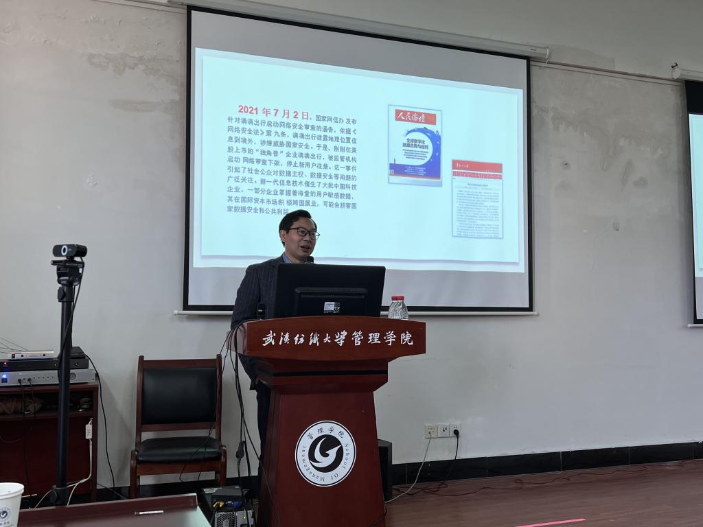 11月17日下午,武汉大学冉从敬教授受必赢bwin网址大全邀请作线下讲座,拟通过本次讲座为学院研究生分享数据主权的国际博弈与战略对策。本次讲座由必赢bwin网址大全院长吴金红主持,必赢bwin网址大全部分教师出席,全体研究生积极参会。