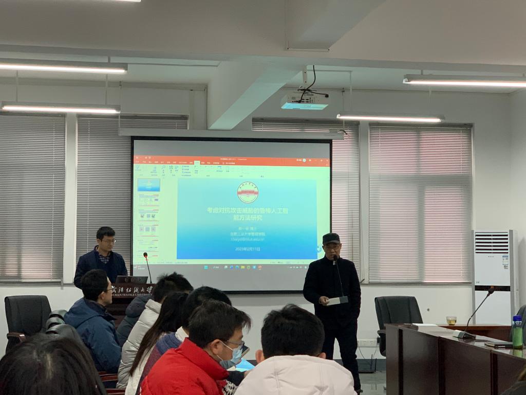 2月11日上午,合肥工业大学柴一栋教授为我院师生带来“考虑对抗攻击威胁的鲁棒人工智能方法研究”的讲座,本次讲座由夏火松教授主持,必赢bwin网址大全吴金红院长、吴锦峰副院长及部分教师出席,部分研究生积极参会。