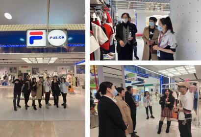 交流结束后,滕胜娟一行参观了安踏斐乐服饰(FILA)有限公司两家标杆门店,并看望了学院优秀毕业生李娜、吕潇。